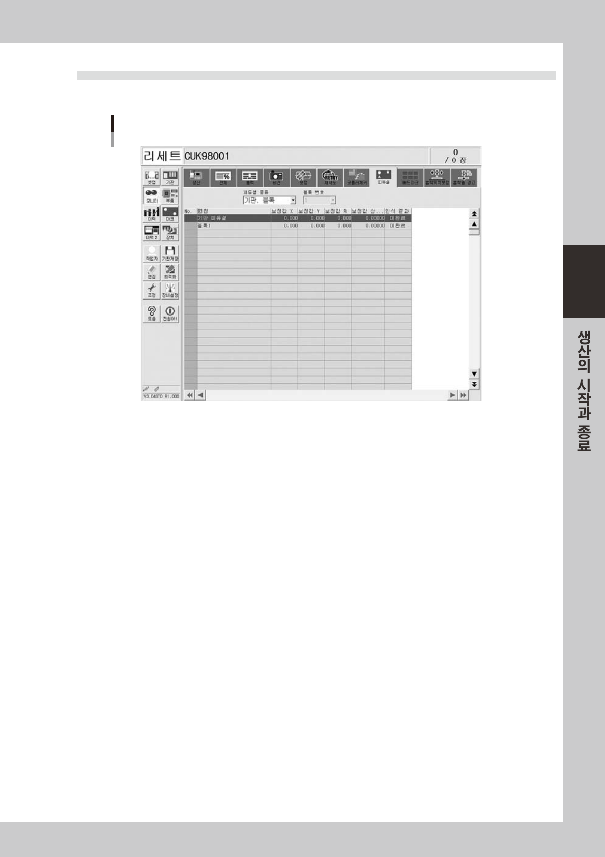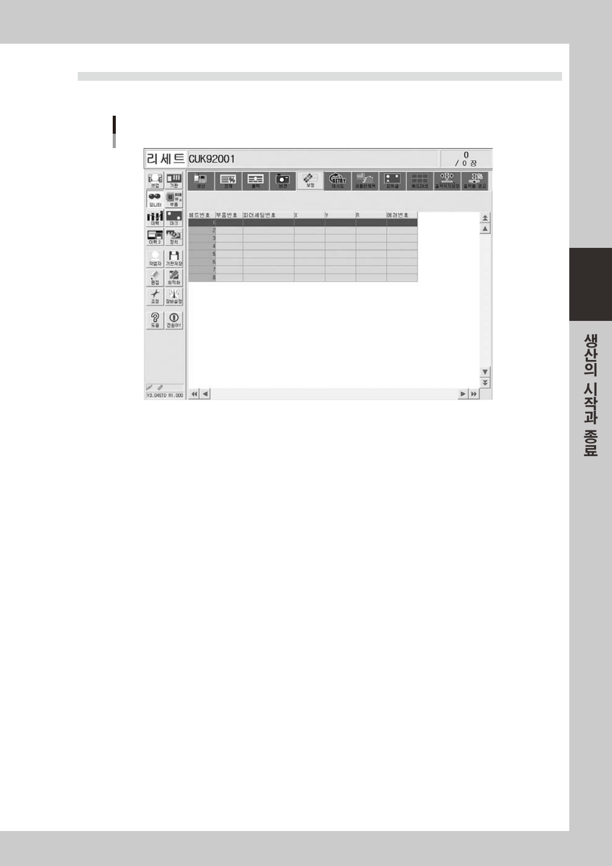 자동 운전중인 부품인식 결과의 보정량 , 에러코드 등이 일람표 형식으로 표시됩니다 .