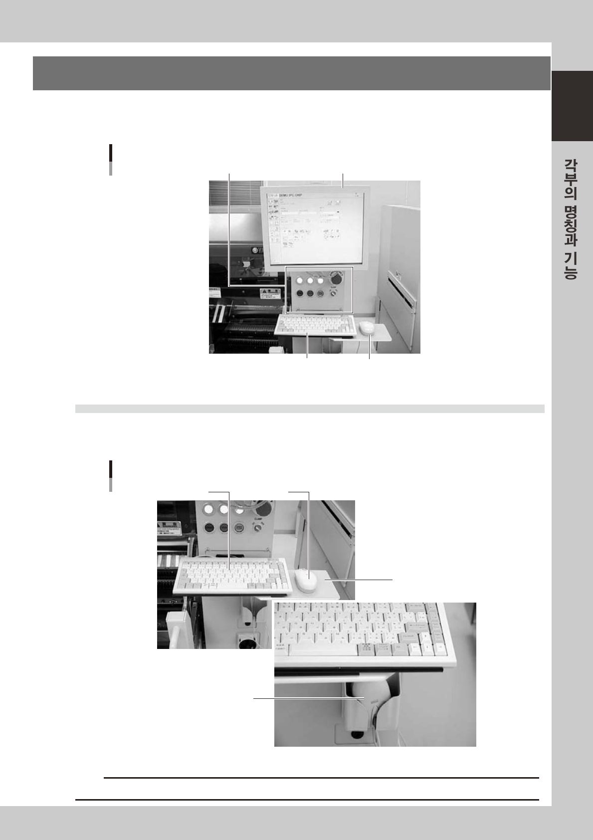본 장비는 조작과 데이터편집 등에 사용하기 위한 키보드와 마우스가 표준장착되어 있습니다 . 화면상의 아