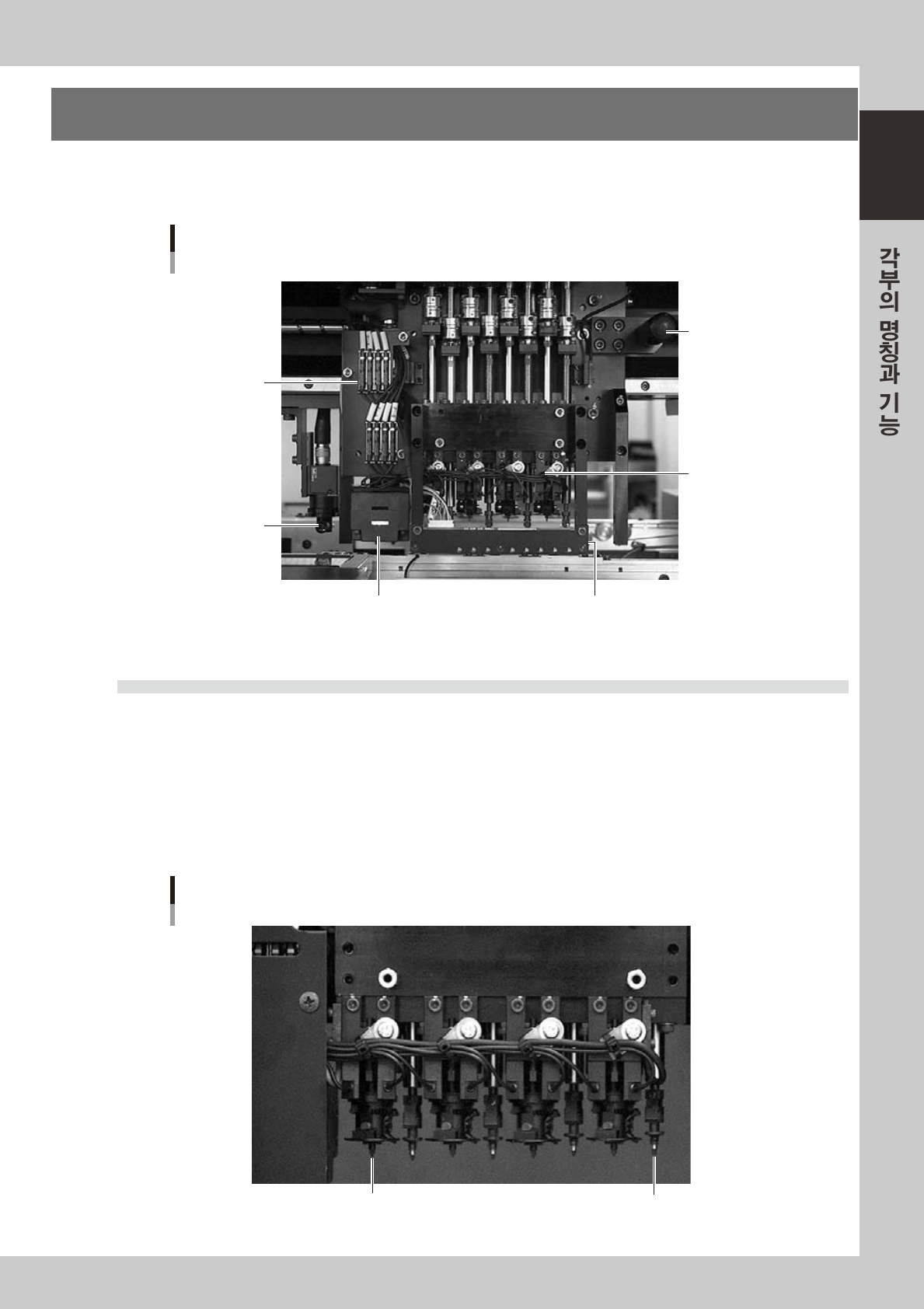 헤드부는장비의XY 축상에탑재되어있으며 ,부품의흡착이나실장을합니다 .아래에헤드부의구성이나노즐