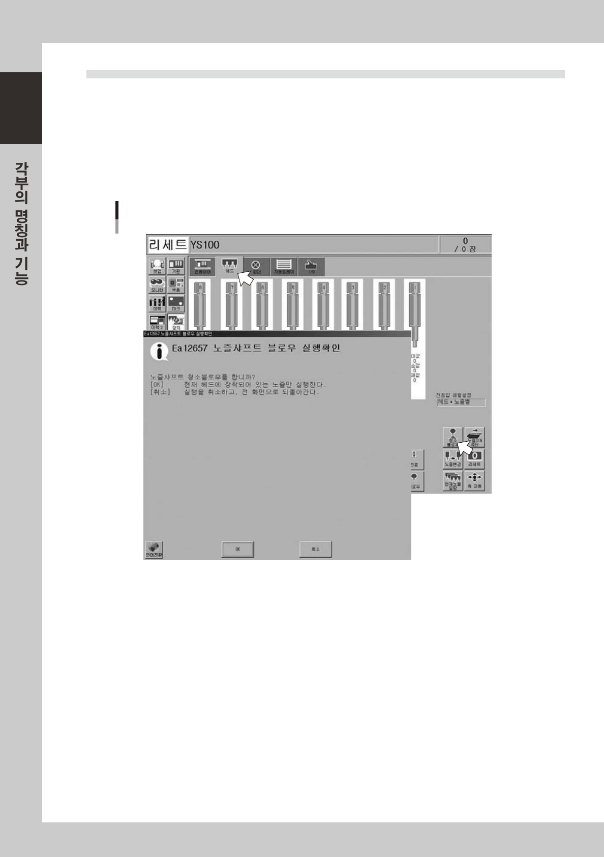 노즐샤프트청소블로우를실행할경우에는 ,[OK] 버튼을누르고 ,다음Step 으로진행해주십시오 .