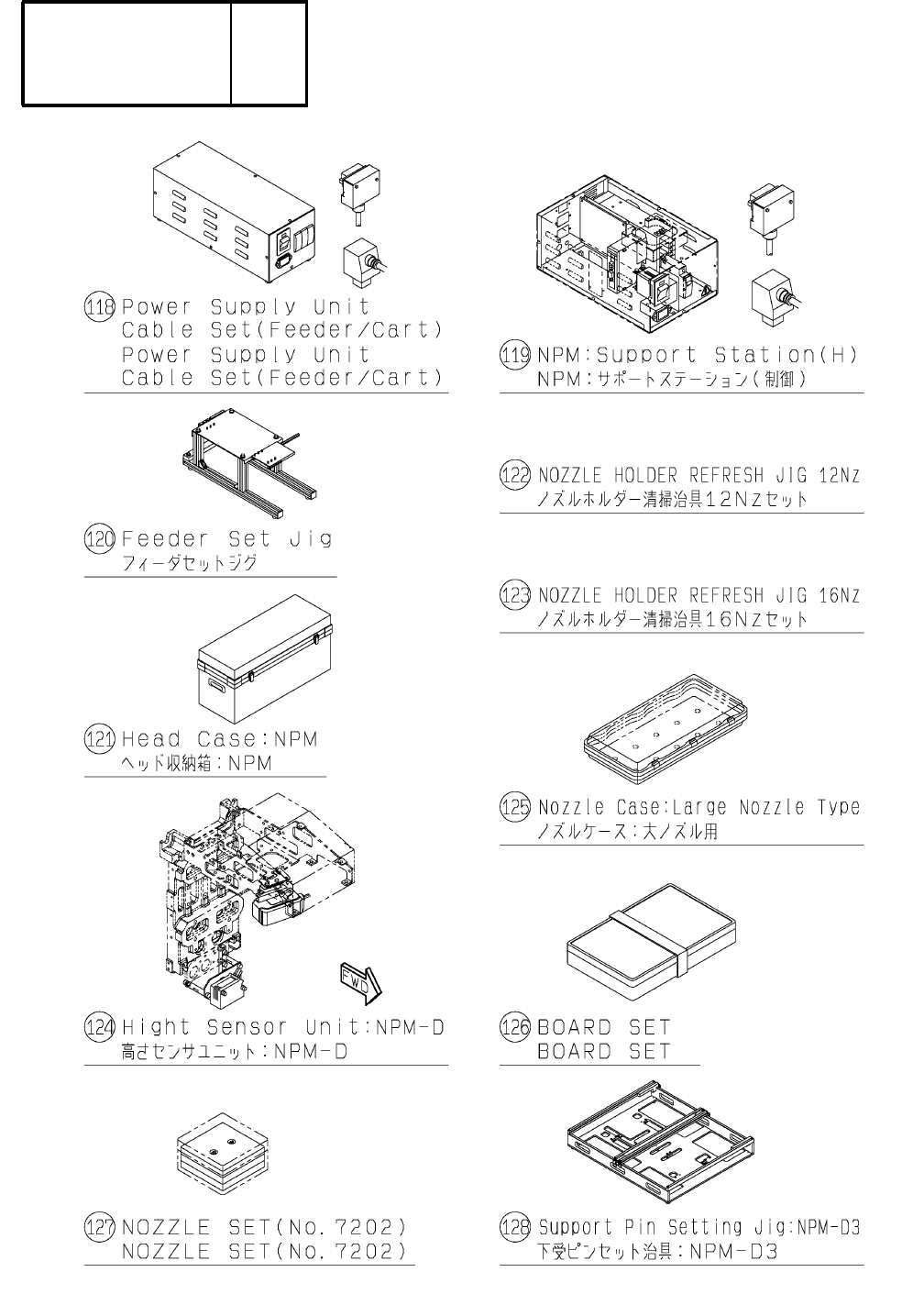 30 キットリスト KIT LIST Kit Name 番号 Part No. キット名 品 番 No. Rank Q'ty 数量 ランク 頁 Page 118 N610101859AA Power Supply Unit Cable Set(Feeder/Cart) Power Sup ply Unit Ca ble Set(Feeder/C art) 1 O38 9 119 N610099162AA NPM:Support…
