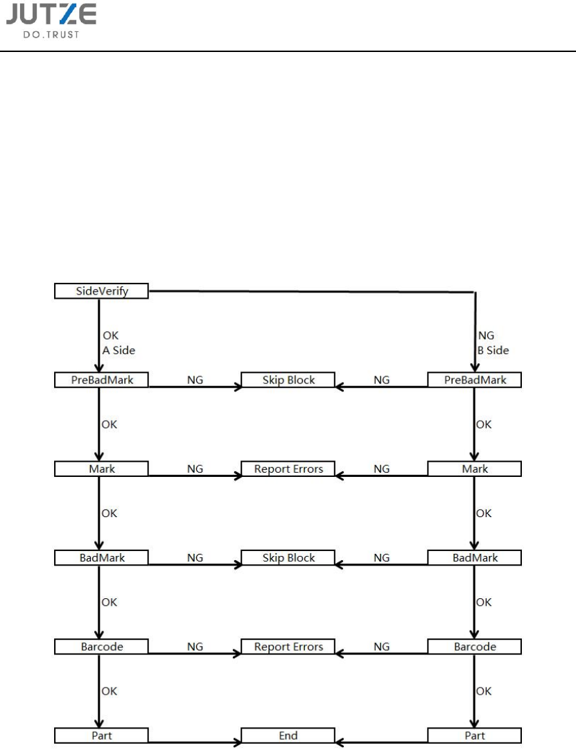第十三章 设备检测流程的设 定 V 7.0.4584.0-2 www .jutze. com.cn 1 16 / 136 第十 三章 设 备检 测流程的 设定 本章描述设 备在检测基板 时遵循的先后顺 序的设定, 此顺序主 要依照在编程时 设定的元件 类型执 行, 目前 常用的元 件类型有 A/B 面识别标 识 ( SideVerify ) , 前置差板 识别标识 ( PreBadMark ) , 基准标记点 ( Mark ),差板识别…
