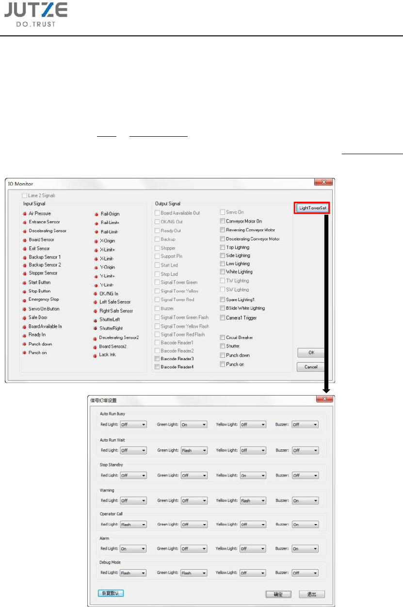 中"Input"代表输入信号,"Output"代表输出信号(勾选即可手动输出该信号),点击 LightTowerSet