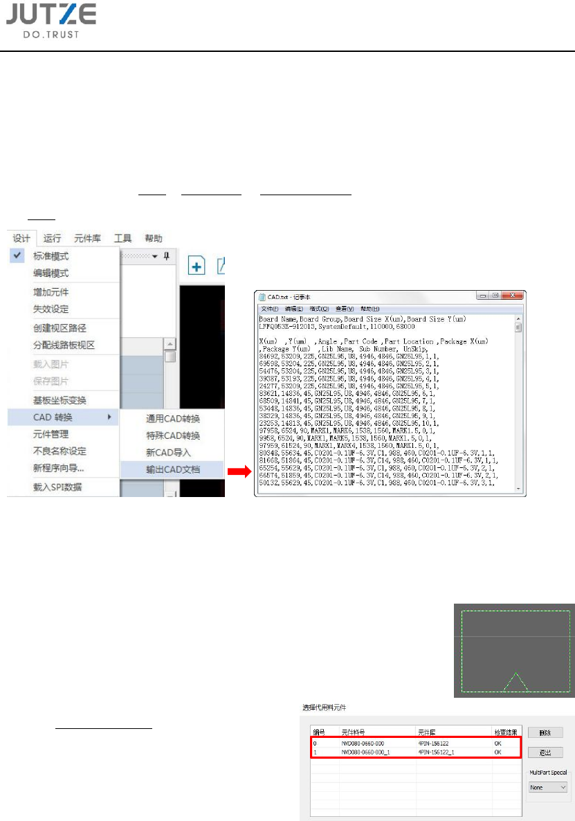 用于将当前程序的 CAD 数据输出为文本文档,该文档内容包含基板和元件相关信息和坐标。