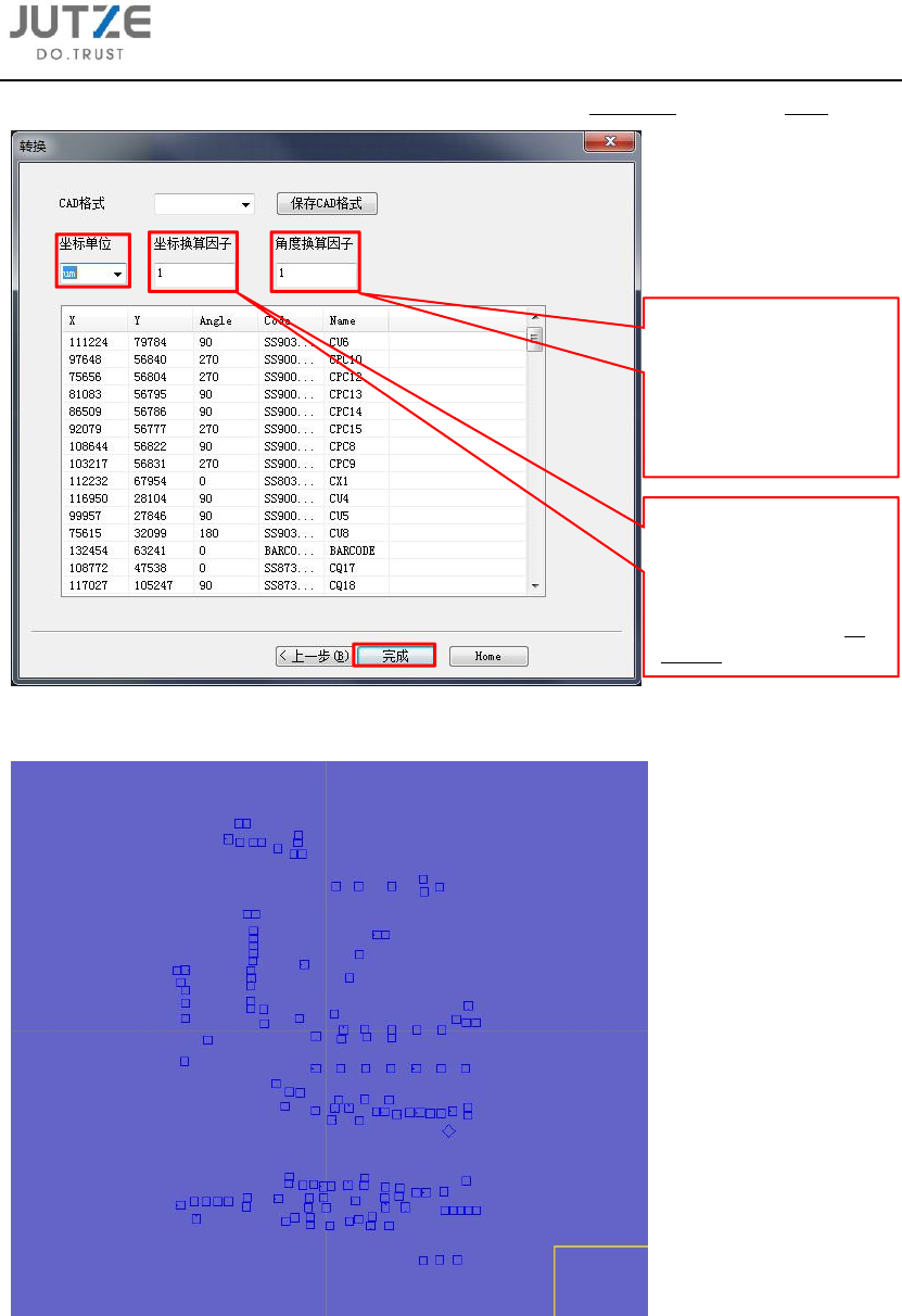 5.1.1.6 在转换界面中,选择当前数据的 X/Y 坐标系所使用的坐标单位,之后点击完成;