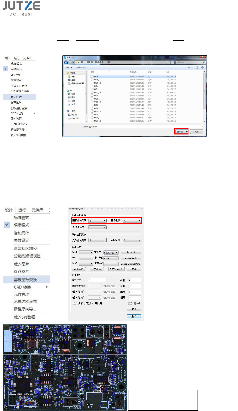 点击主界面菜单指令栏设计 - 载入图片,选择保存的基板全图,点击打开,软件载入基板全图,