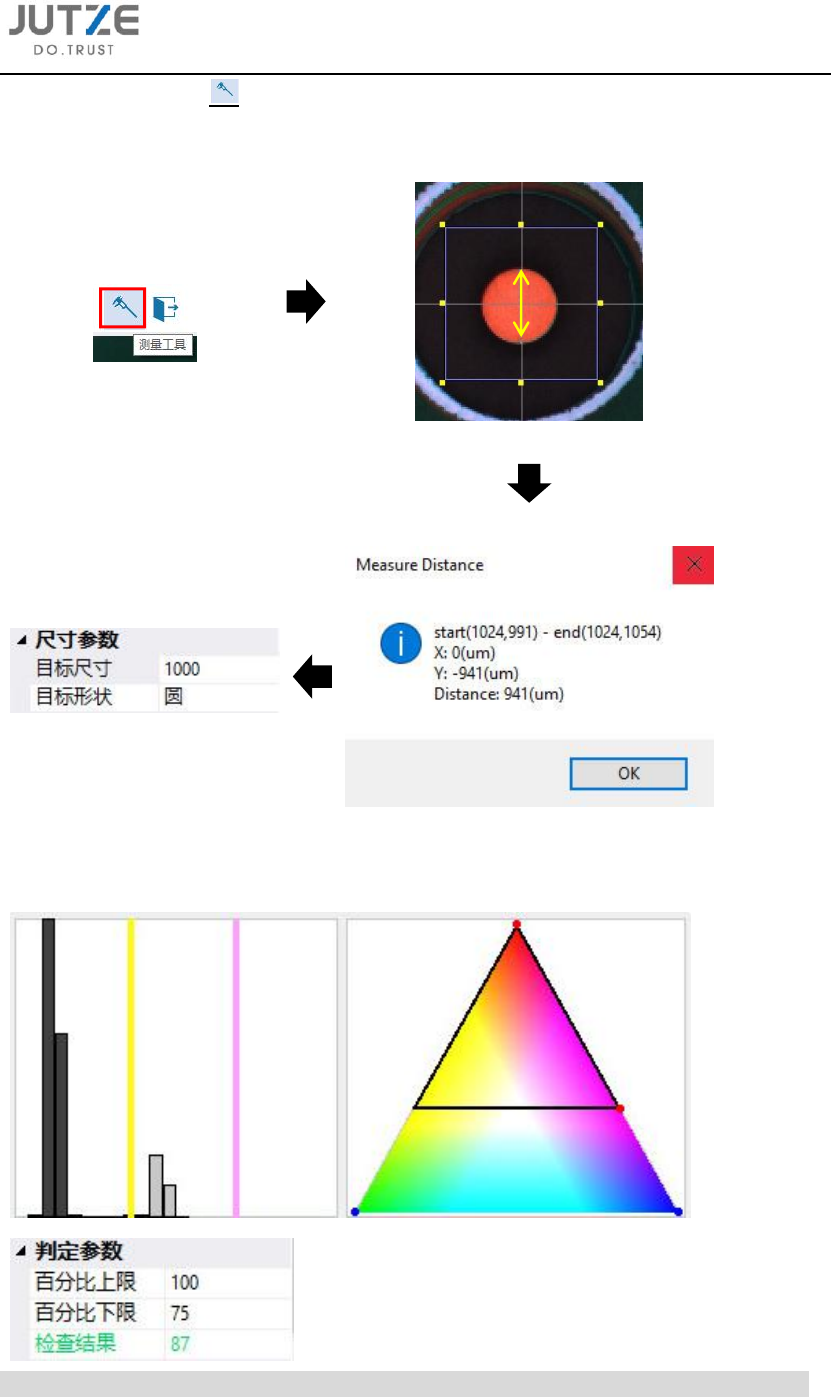 第六章 基准 标记点的制作 V 7.0.4584.0-2 www .jutze. com.cn 39 / 136 6.1.4 点击快 捷菜单栏上新建 一个检测窗口 ,使左侧检 测窗口信息栏 中增加一行检 测项; 6.1.5 设定 NG 种类、照 明光源和检 测算法;
