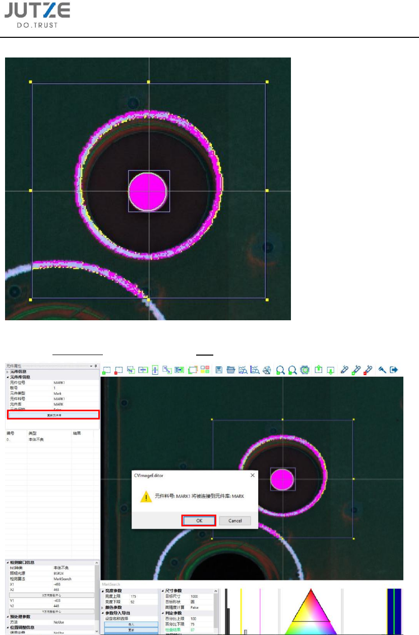 第六章 基准 标记点的制作 V 7.0.4584.0-2 www .jutze. com.cn 42 / 136 6.1.10 点击 快捷菜单栏上 退出, 在弹出窗口中点击 Y es ,保存当前元件检查项,并退出元件编 辑界面; 6.1.1 1 退回 到软件主界面,第一 个 Mark 制作完 成。