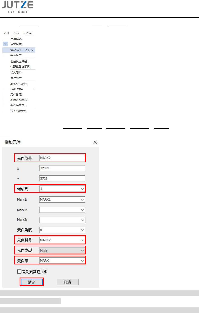 6.2.4 在增加元件界面,设定元件位号、拼板号、元件料号、元件类型、元件库等信息,点击