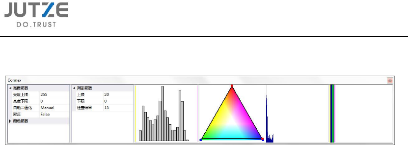 第十章 主要 算法逻辑解释 V 7.0.4584.0-2 www .jutze. com.cn 95 / 136 图解二 : 橙色尖括号 总长度:符合 亮度和颜色的 焊盘末端长度之和 绿色箭头总 长度:搜索 窗口的长度 “ 19 ”:上 述两个值的百分比 ,即按“焊盘 ”参数选择进 行检查的“焊盘 末端 % ”值。 图解三 : 红框中白色 虚线:引脚顶 端定位线 绿框中黄色 虚线:焊盘末 端定位线
