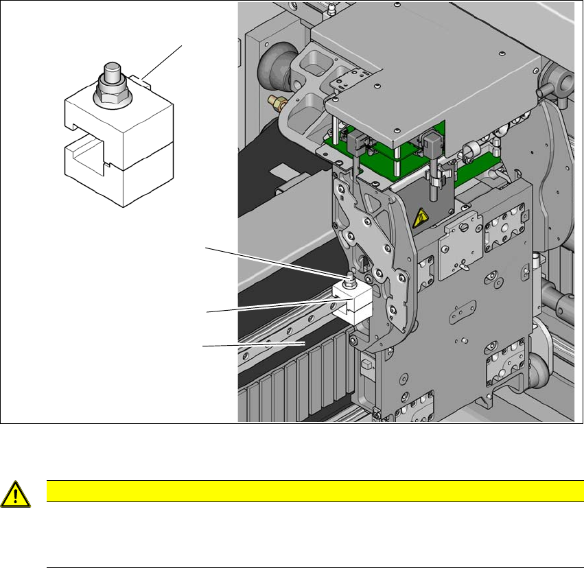 松开支撑架 (2) 上的螺丝 (1),以便支撑架可从线性导轨上轻松取下。