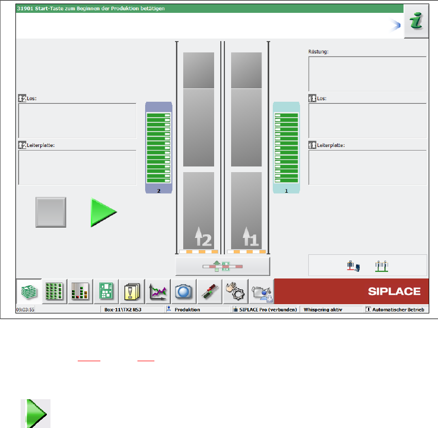 用户手册 SIPLACE TX 系列 5 贴片机处的工作 使用软件版本 713.0 或更新 01/2020 版本 5.3 接通 SIPLACE 生产线 215 5.3 接通 SIPLACE 生产线 5.3.1 启动 SIPLACE Pro 生产线控制 GUI 程序 通过 Windo ws 的开始菜单在生产线 计算机上启动 SIPLACE Pro 生产线 控制 GUI 程序 : 开始 --> 程序 -- > SIPLACE…