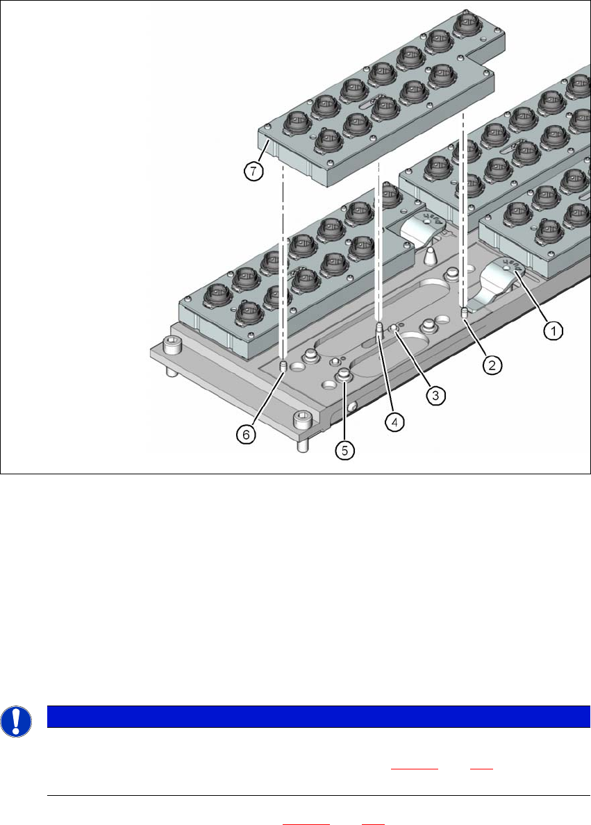 插入前,对齐吸嘴盘,使对中销 (部件 2 和 6,图 6.1 - 10,第 272 页)滑入对中