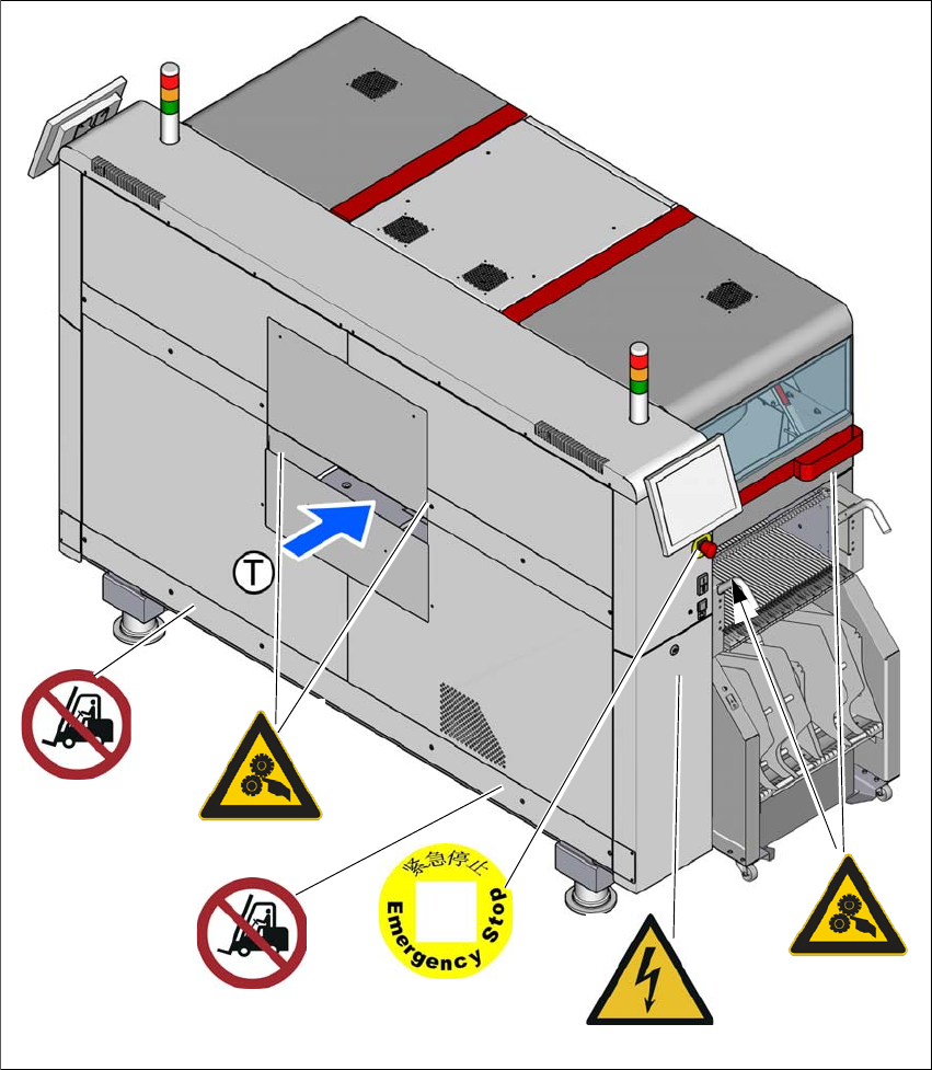 图 2.2 - 6 贴片机上的警告标签 (对于中国标签,示例如 SIPLACE TX2i 所示)