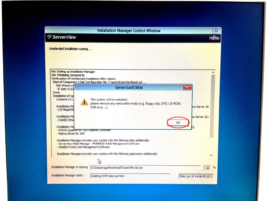Figure 3-24: Installation Manager is prompting to remove the ServerView DVD