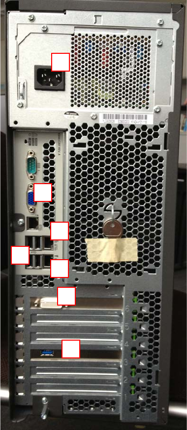 The following picture shows an overview of the interfaces of your computer hardware (backside).