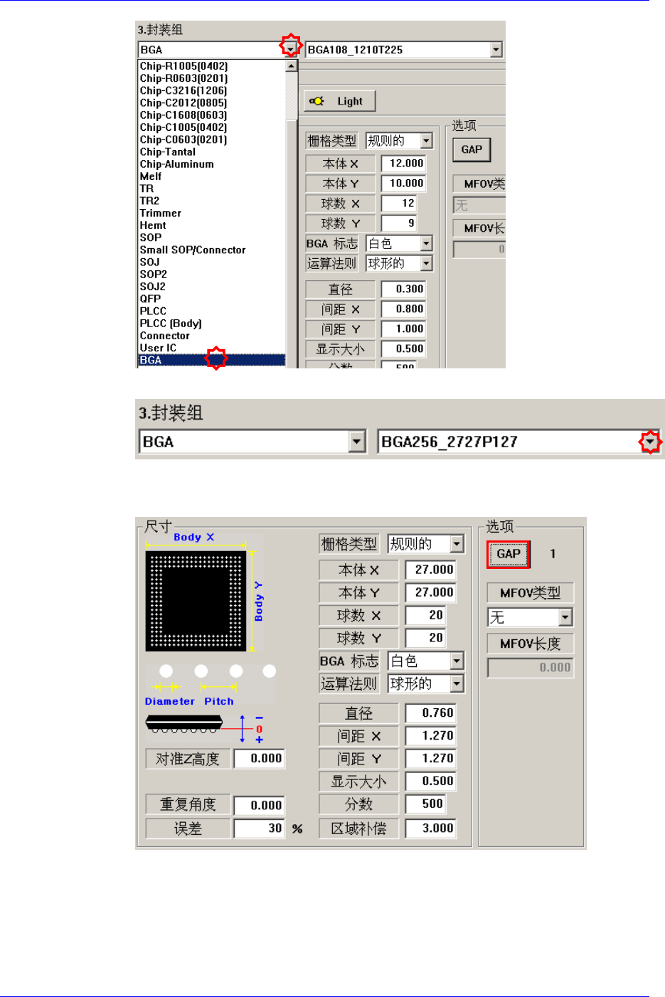 Samsung Component Placer SM320 Pr ogramming T utorial <3.Packag e Group>Profile BGA256-2727P127 Grid T ype <Regular , Check, Rev .check> (…
