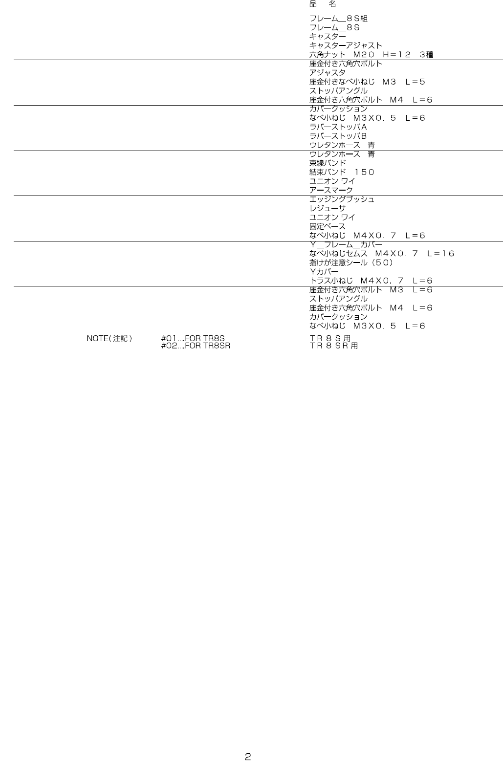 - - REF.NO NOTE PARTNO DESCRIPTION Qty 1 401-54641 FRAME_8S_ASM 1 2 401-54643 FRAME_8S (1) 3 E5012-723-000 CASTER (4) 4 E6002-723-000 CASTERADJUST (4) 5 NM-6201202-SC NUTM20 (8) 6 SL-6061242-TN BOLT …