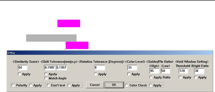 Threshold:用於設置“空焊框”内“亮與暗”的分界灰階值(0 ~ 255);
