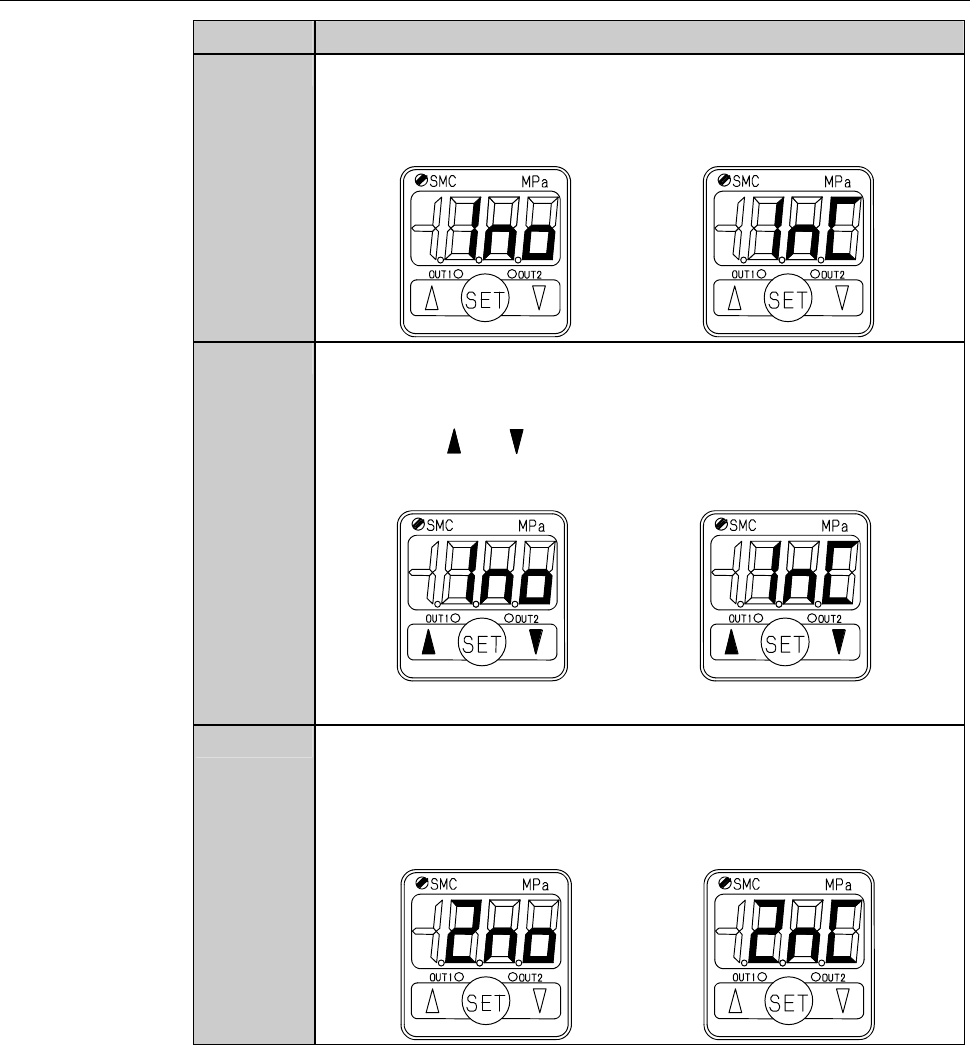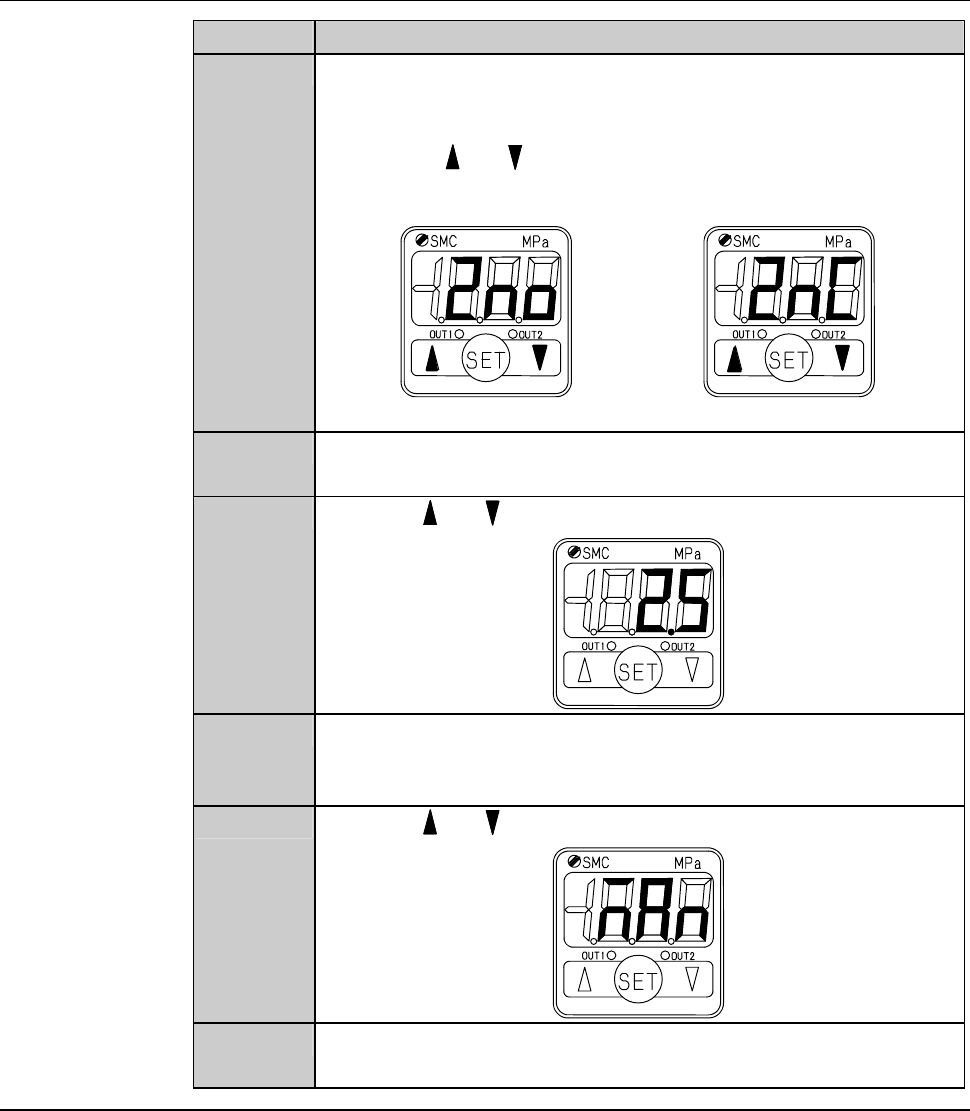B-115 Procedur e of initial setti ng (Continue d) Step No. Do This 4 The display of the sensor has chan ged to the "OUT1 output pattern setting" mode. [Positive pressure ] [Neg ative pressure] 5 Make sure that …