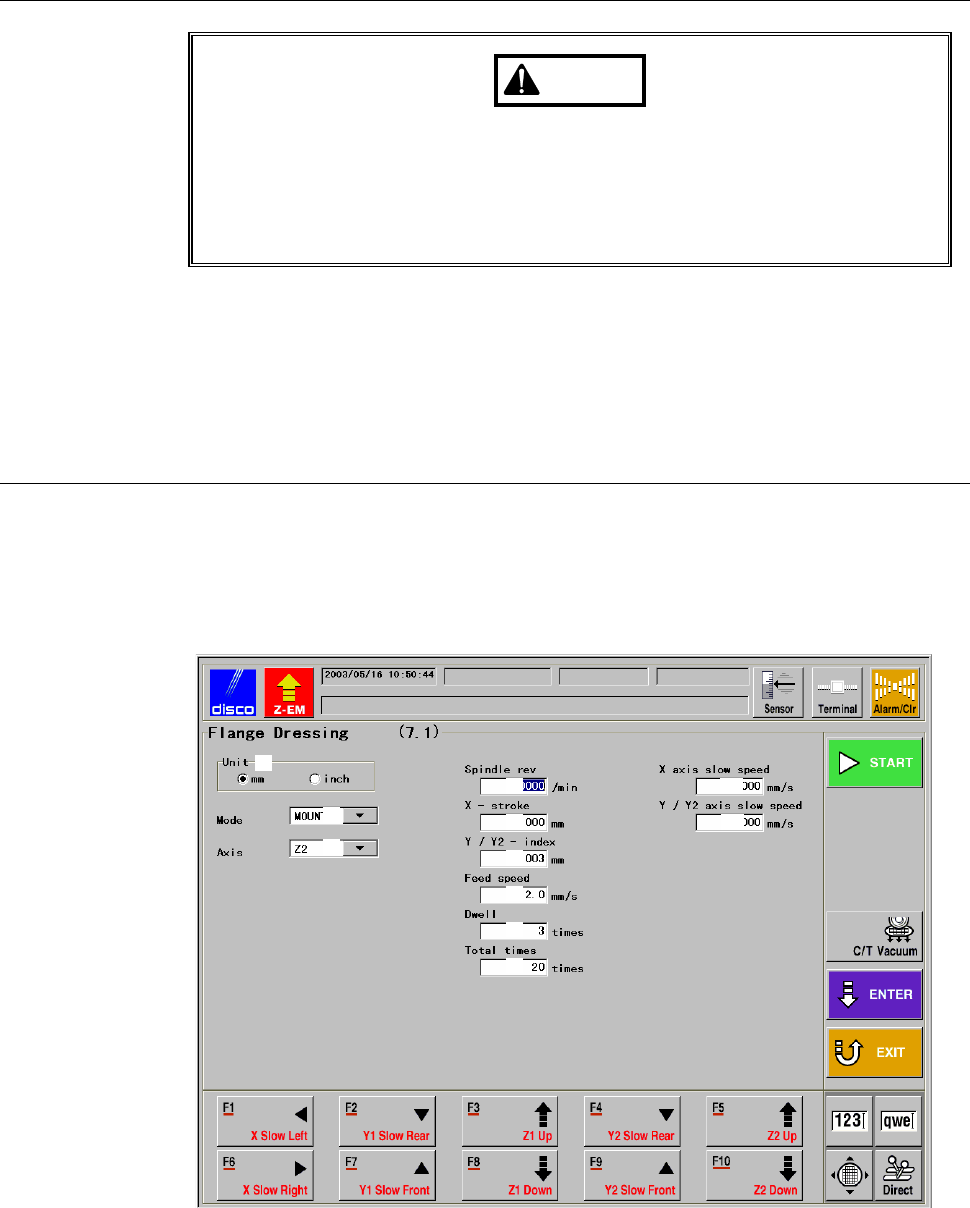- The FLANGE DRESSING screen [screen 7.1] is displayed.