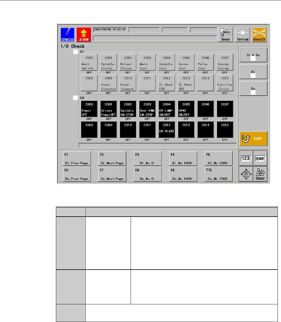 I/O CHECK screen (Continued)