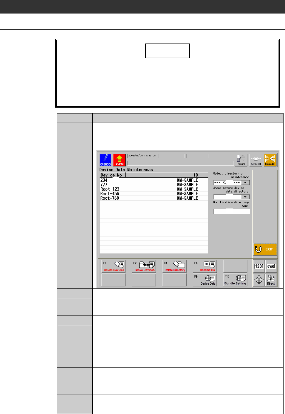 C-54 6-3. Del eting Directo ries Procedur es for dele ting di rectories CAUTION Once you delete a dire ctory, all the dev ice data store d in the directory will b e erase d. And it is impossible to re store these de lete…