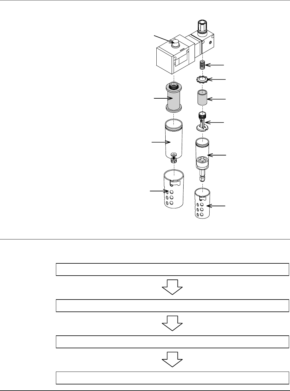 F-5 Air cl ean unit expl oded vi ew The illustration below shows the exploded view of the air clean unit. Mist separator elem ent Bowl Case Cas e Bowl Joi nt Air filter Stopper Spr ing Pop-up valve (red) Operation flow T…