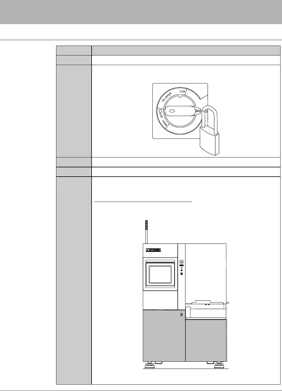 Turn OFF the circuit breaker at the left of the machine. Lock out