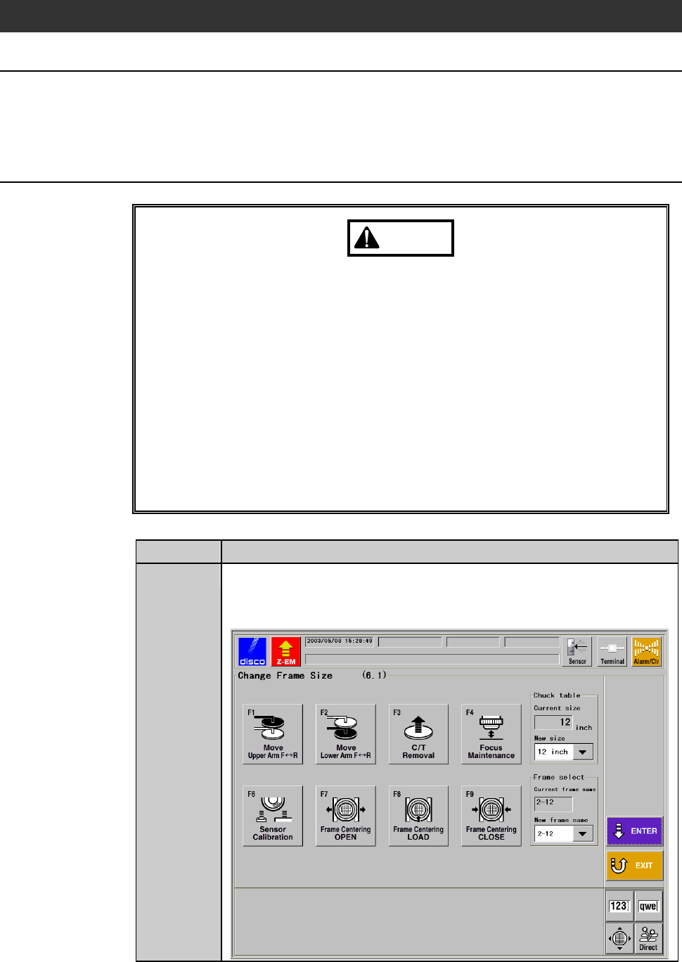 - The CHANGE FRAME SIZE screen [screen 6.1] then appears.