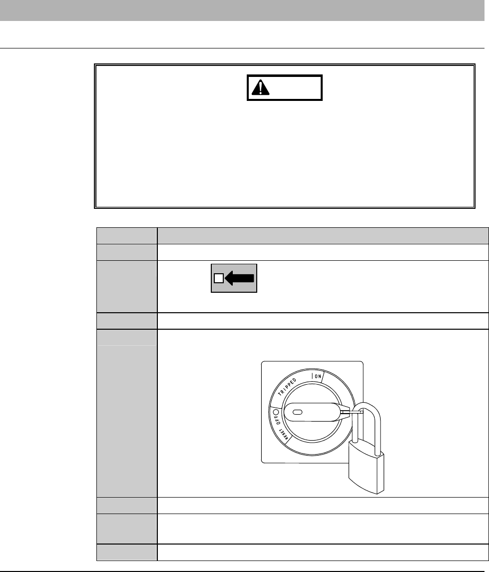 Turn OFF the circuit breaker at the left of the machine. Lock out