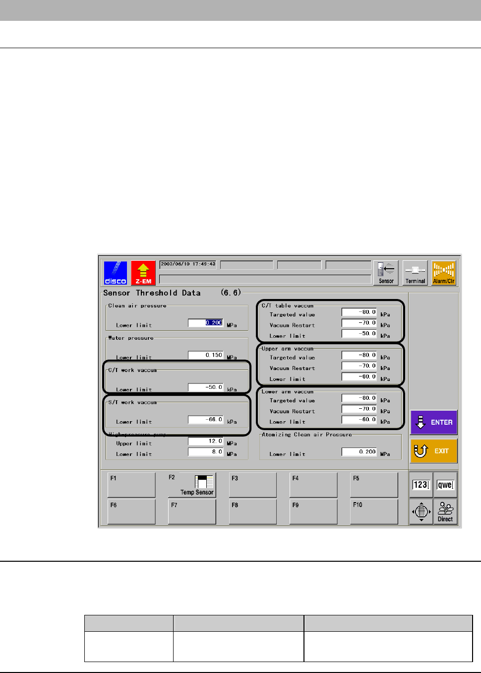 To set these pressures, use the SENSOR THRESHOLD DATA screen [screen