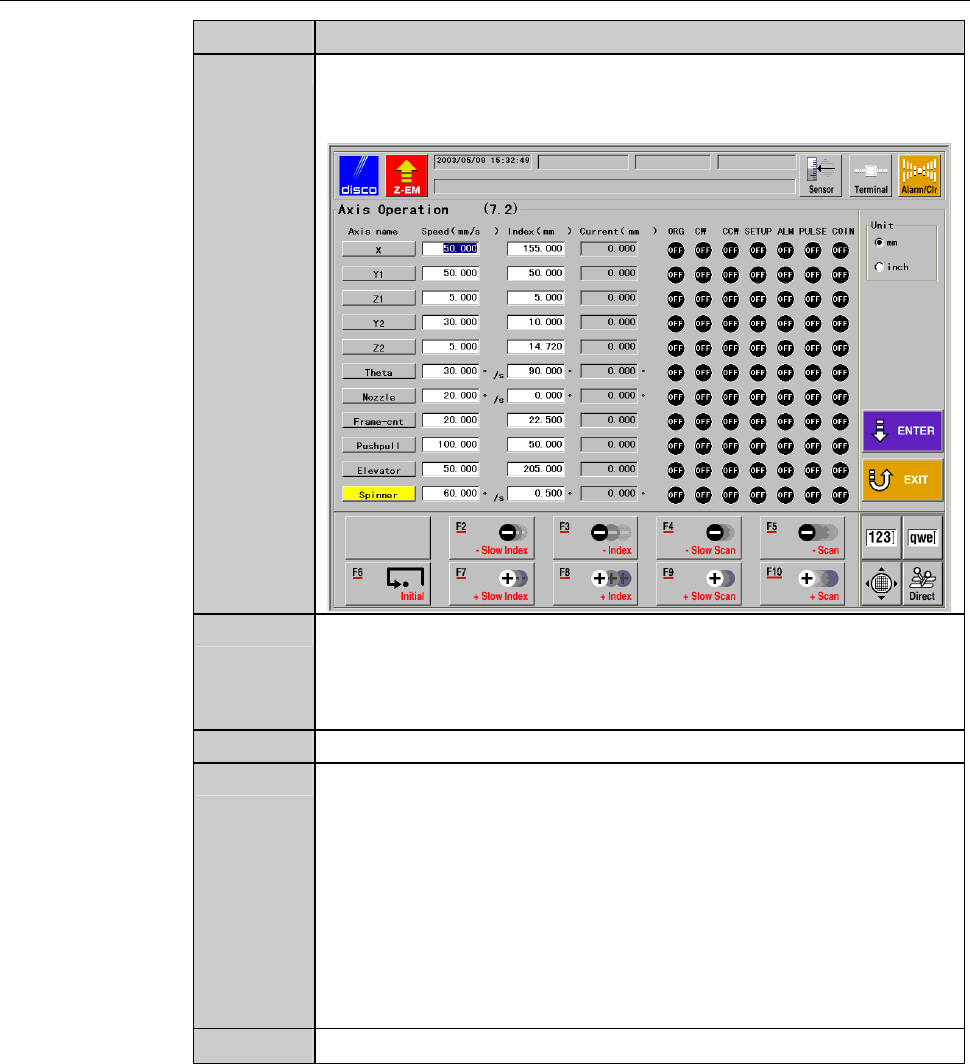 operated with the axis operation buttons. The maintenance