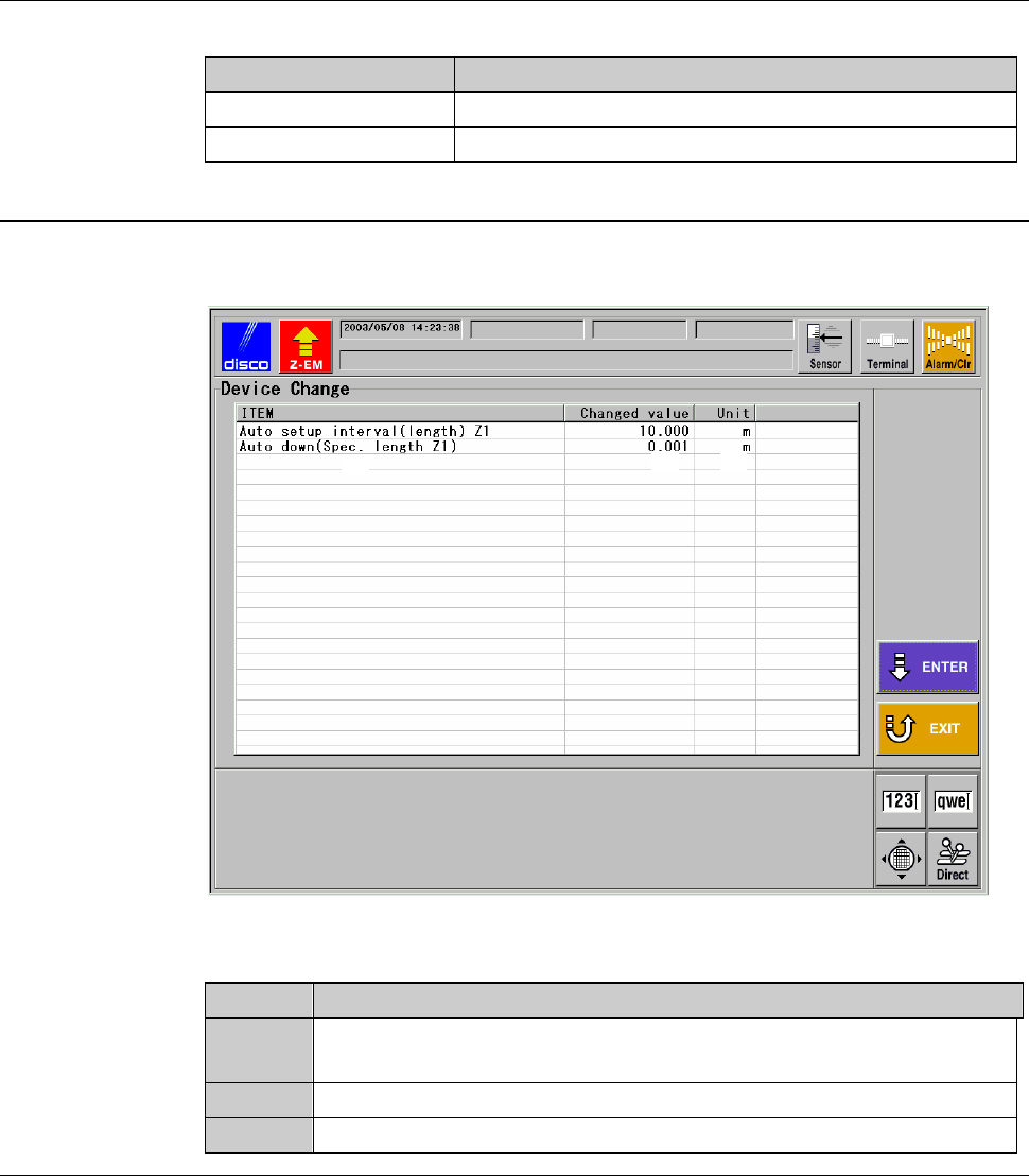 DATA CHANGE screen (for setting).