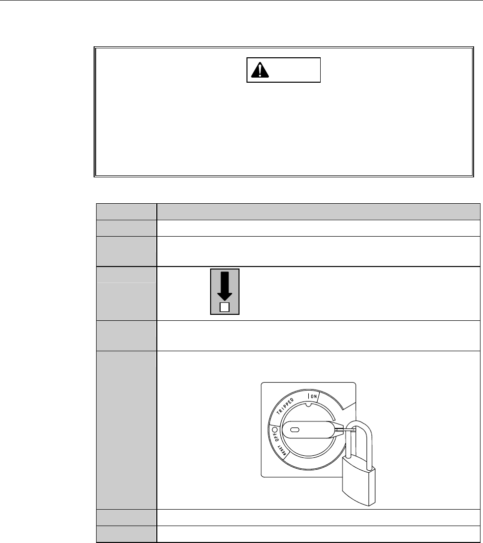 Turn OFF the circuit breaker at the left of the machine. Lock out