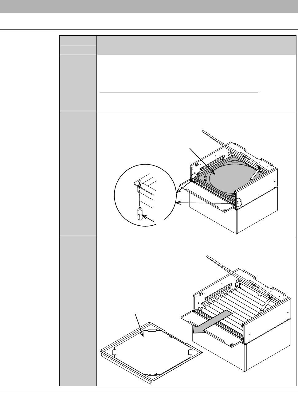 F-117 5-3-2. Prep aration of replacing the UV irradiation lamp Procedur es for prep aration of re placing th e UV irr adiation lam p Step No. Do This (Continued from the previous section) 1 Retrieve the following compone…