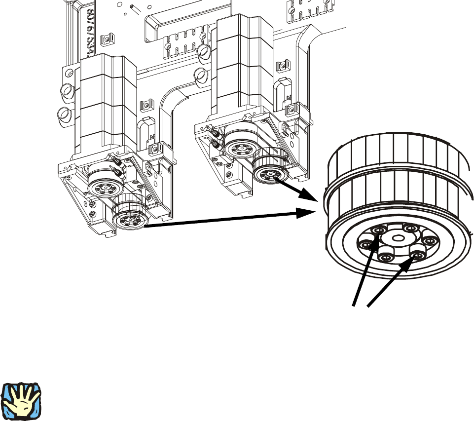 : Kontrollieren Sie den festen Sitz der Schrauben, mit denen das Zahnrad auf der Spindel befe-