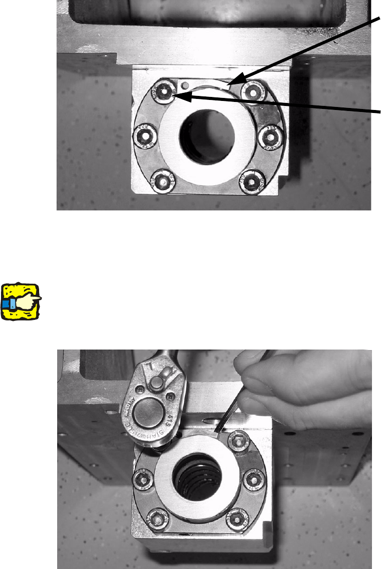 : Press the retaining clamp against the flanged nut using a suitable tool as shown in the picture