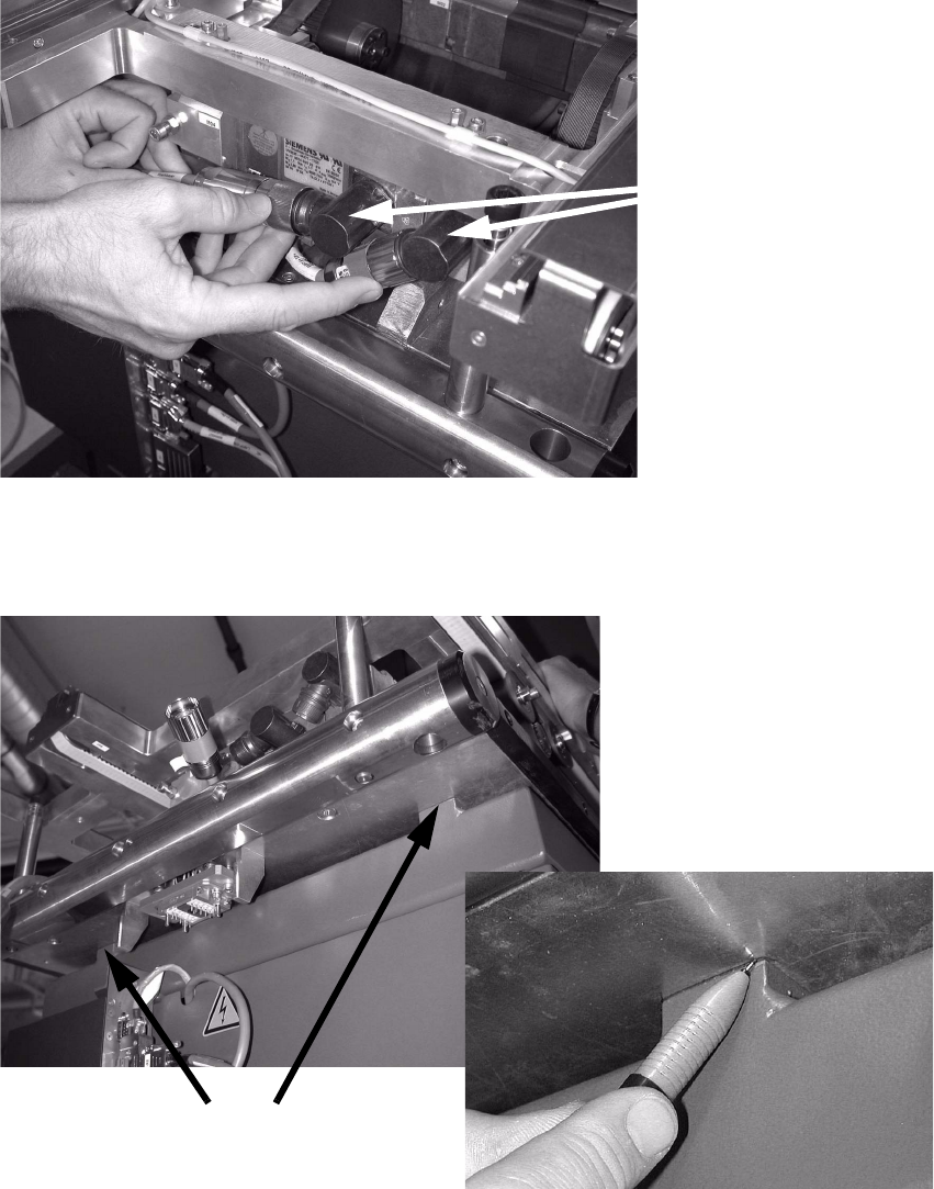 Installation of retaining clamp for lif ting axis/alignment of spindle/check of gear fixing for spindle, MTC2 06/2004 Edition 31 2.4.2 Inserting the retaining clam p if the hole is at the front : Disconn ect both p lugs …
