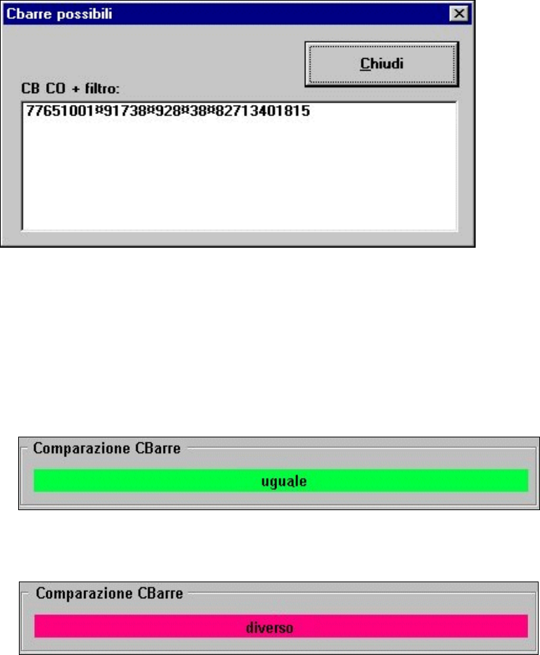 visualizzato il risultato del confronto del codice a barre (vedi esempi seguenti).