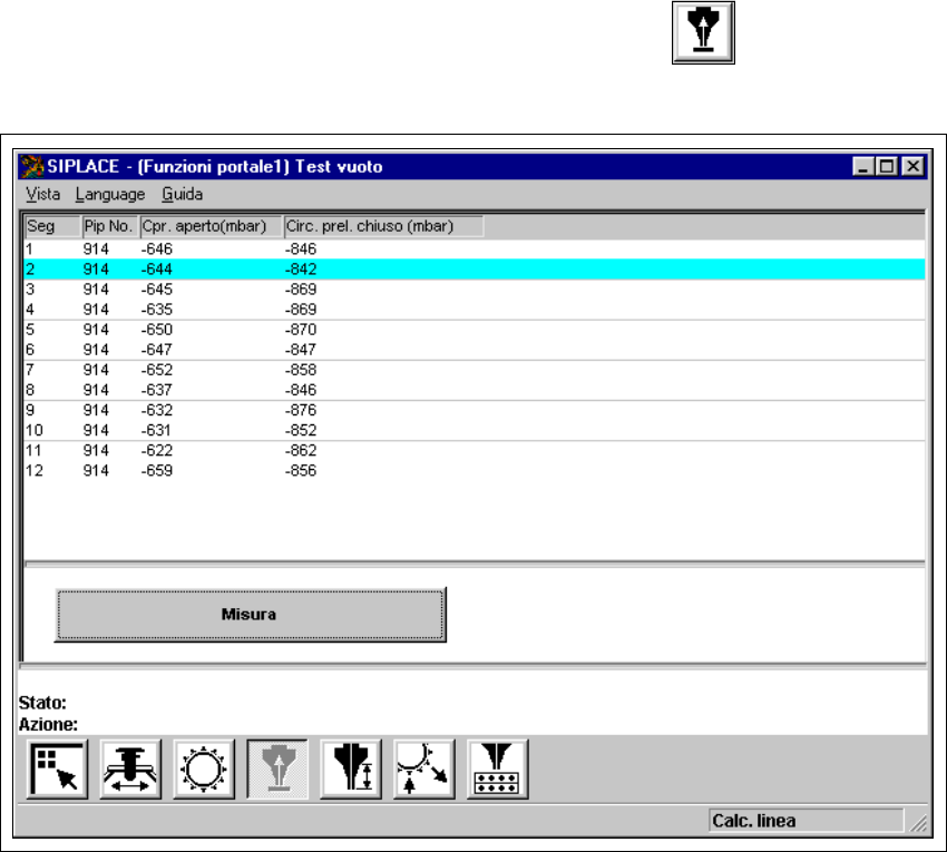Nella vista "Test vuoto" si trova il pulsante "Misura" con il quale viene attivato il test del vuoto di
