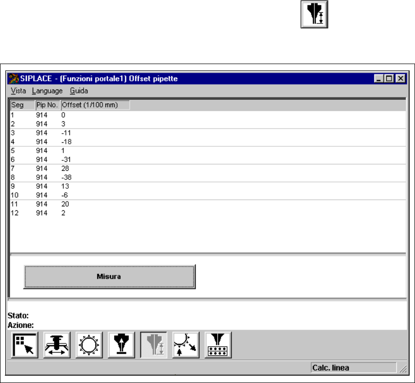 L’interfaccia d’utente passa alla vista "Offset pipette" (vedi fig. 5.2 - 5).