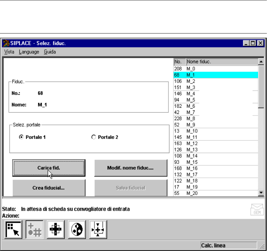 Fig. 6.5 - 9 Menu ’Selezione fiducial’, opzione ’Carica fiducial’
