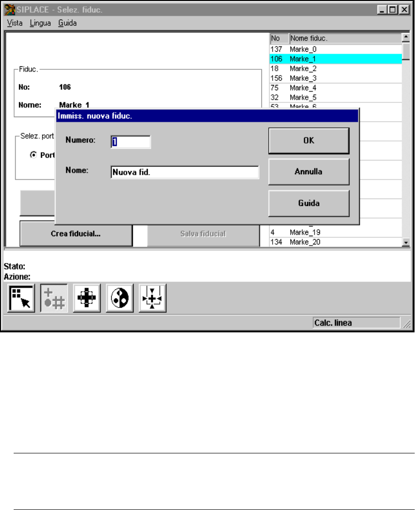 Fig. 6.5 - 11 Menu ’Selezione fiducial’, opzione ’Crea fiducial’, casella di immissione