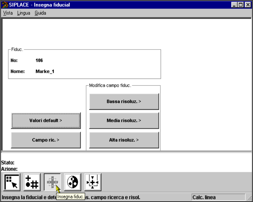Fig. 6.5 - 14 Menu ’Insegna fiducial’, schermata ’Insegna con valori standard’