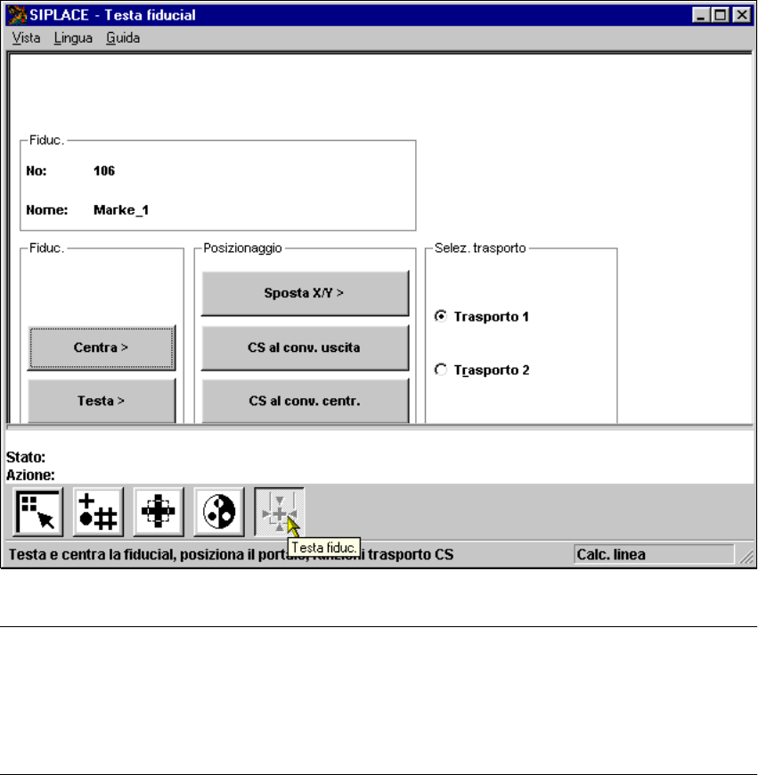Se si clicca sul pulsante ’Testa’ il menu ’Testa fiducial’ sparisce ed appare la schermata. 6