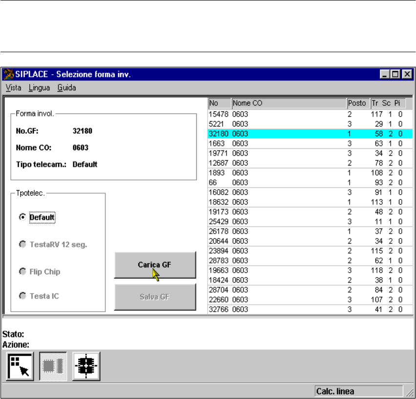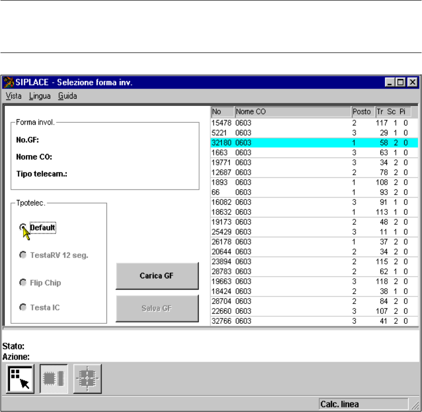 6 Funzioni Vision Istruzioni per l’uso SIPLACE 80S-20/F4 6.6 Testa componente Versione software SR.406.xx Edizione 02 /2000 IT 284 6.6.3.2 Opzione ’Carica GF’ NOT A 6 Se si è già la vorat o prec ede ntement e con un a fo…