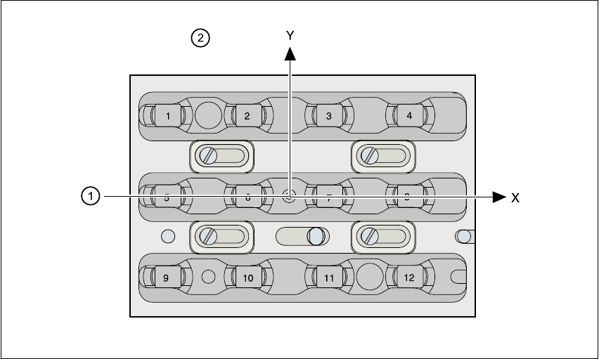 (2) Posizione delle pipette nel caricatore rispetto alla fiducial di posizione
