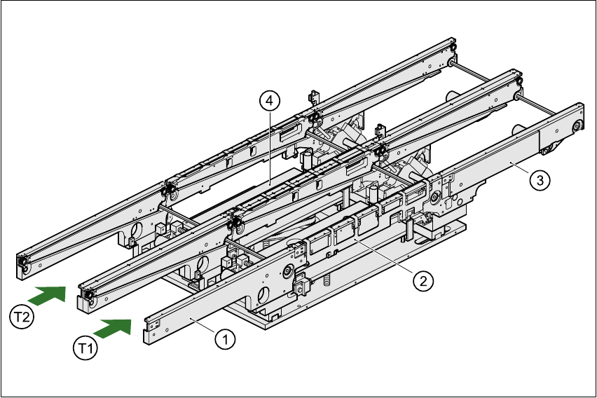 La traccia destra di trasporto (vista nella direzione di trasporto) viene definita „Trasporto 1“, la