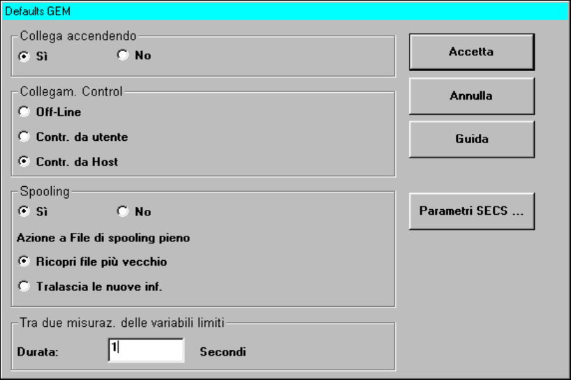 Å Per modificare i parametri SECS (vedi paragrafo 12.2.2.3), cliccare sul pulsante Parametri